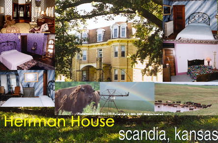 Long ago, C. H. Herrman chose a spot in the Republic River Valley south of Scandia, Kansas to build an extraordinary house. European craftsmen were hired to create the house that he envisioned. They gathered Kansas limestones and began building. Eventually three years later, the fifteen room house was completed with excellent craftsmanship. |